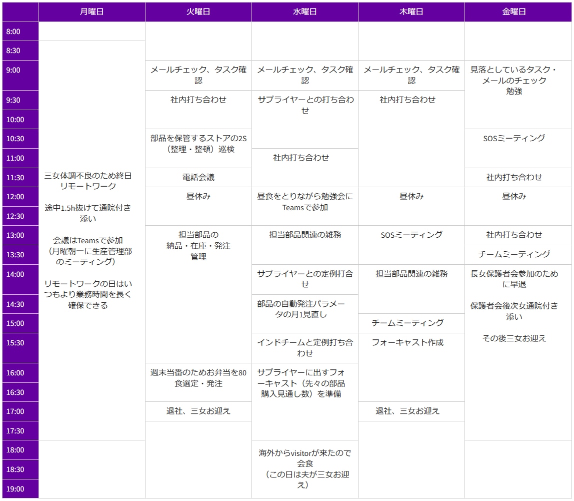 1週間のスケジュールを教えてください