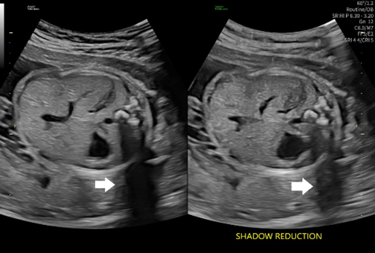 【画像】音響陰影を補うShadow Reductionの比較(左 off/右 on)