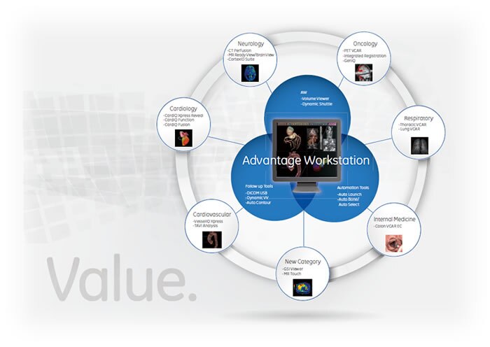 AWは画像の後処理を効率化し、最も貴重な資産である「時間」を最大限に利用できます。また、CT、MR、PET、SPECT、インターベンションといったすべてのモダリティにおいて生産性を向上させ、あらゆる臨床アプリケーションで統一されたユーザーインタフェースを表示します。