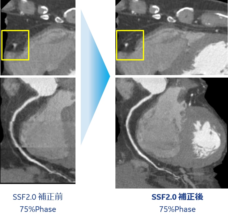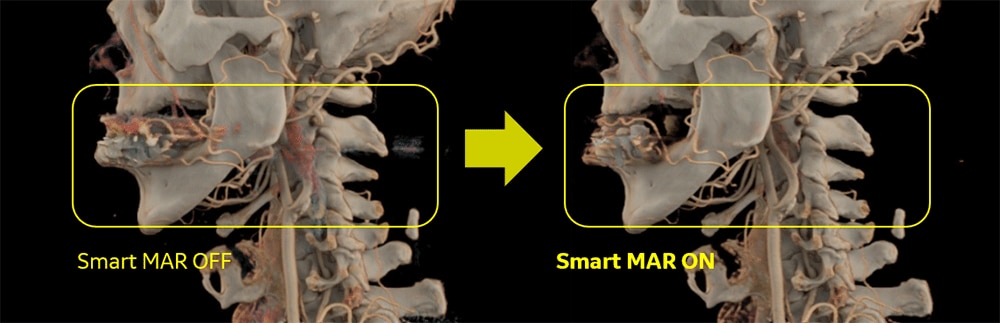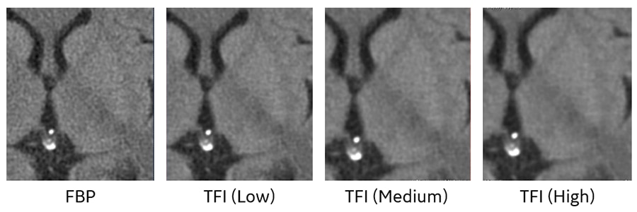 Deep Learning再構成を用いることによりノイズが大幅に低減できるため、従来よりも少ない線量でこれまでと同等の画質を得られることがわかりました。そこで頭部領域ではAuto mA(自動線量変調機能)の最大値を330mAから200mA、胸部領域ではAuto mAの最大値を750mAから330mAに撮影条件を変更して運用を開始しました。また、2022年7月からは3D DLカメラでの自動ポジショニング機能の使用を開始しています。
