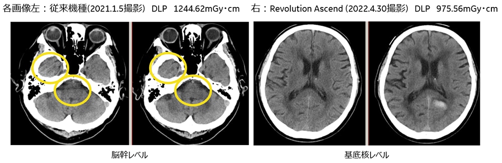 Revolution Ascend の導入後、頭部、胸部ともに平均DLPは明らかに低下し、頭部で約20%、胸部で約25%の被ばく低減が確認できました。前述の通り、線量低減させても画質は維持できており、これはTFI使用によるものと考えます。