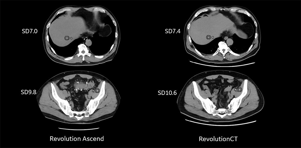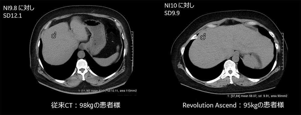 Fig5. 従来CTとRevolution Ascendでの体格が大きい方の腹部画像