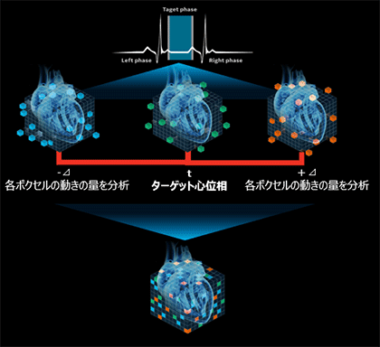 SSF2.0でのTAVI術前検査画像に対する心臓の動き抑制効果を検証するため、収縮期の大動脈弁最大開口位での画像と、その画像でのSSF2.0画像を連続30例 で5段階視覚評価を行った。また、その中でTAVI術前計測から選択されたデバイスサイズと実際にTAVI実施した10例で使用したデバイスサイズの確認を行った。検証データの心拍数は68.2bpm±14.82、再構成位相は28.46%±2.87であった。(図4)