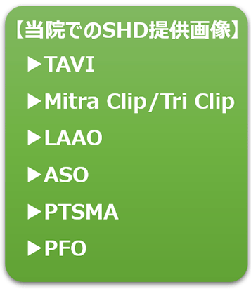 本資料では当院で治療件数の多い、TAVI、Mitra clip、LAAOについての各種臨床画像を紹介致します。