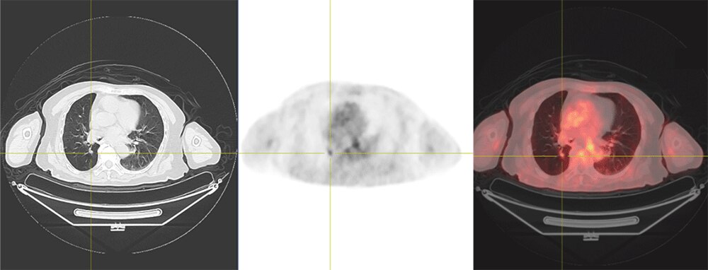 50代 男性 肺がん:術後腫瘍マーカー上昇のためFDG-PET検査施行